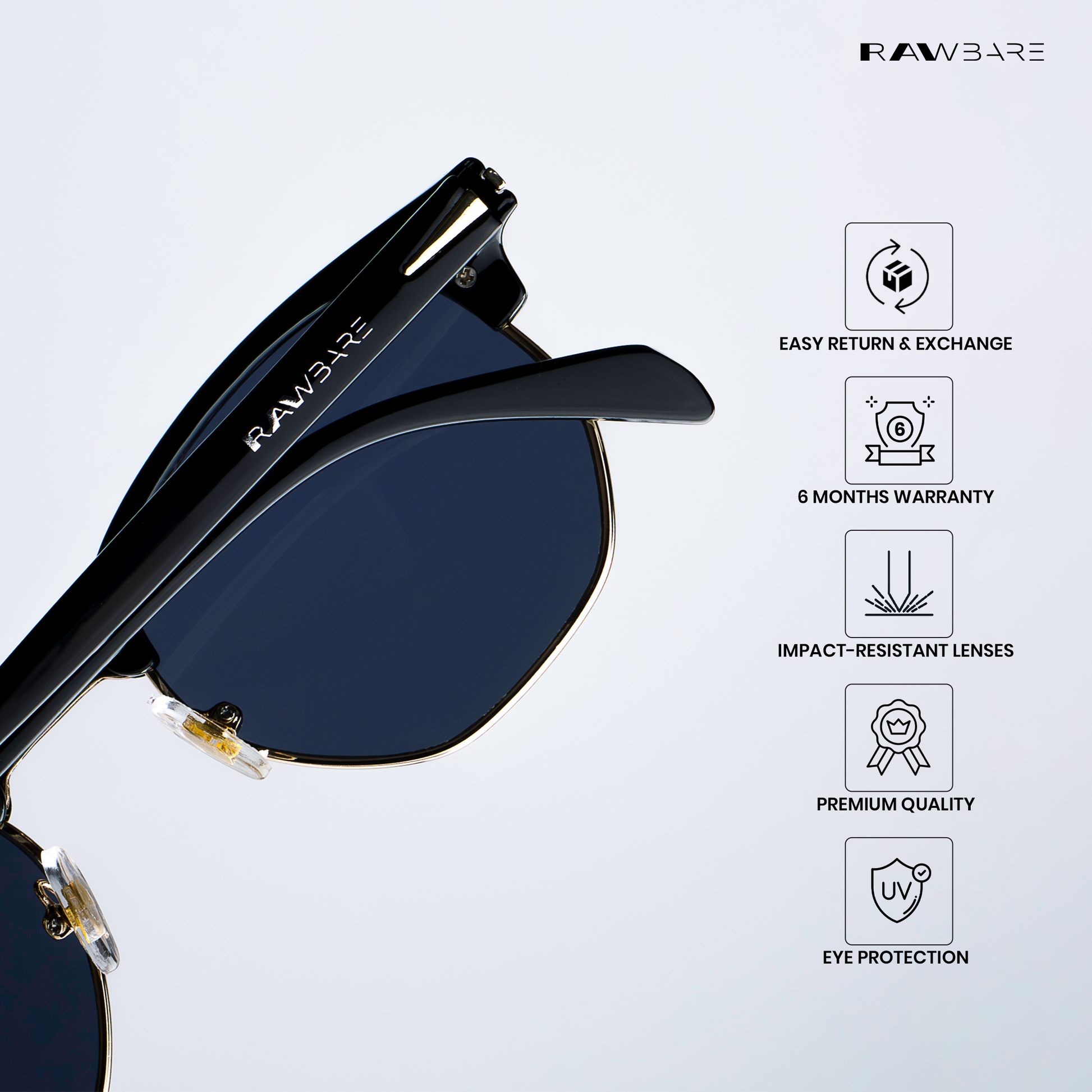 At Rawbare, every pair is crafted with precision and care to meet the highest standards. Our 6-month warranty reflects our commitment to quality and your trust in us. While we stand firmly behind our products, we believe true assurance comes from experiencing eyewear that is built to last. Thank you for choosing Rawbare—where style meets reliability.