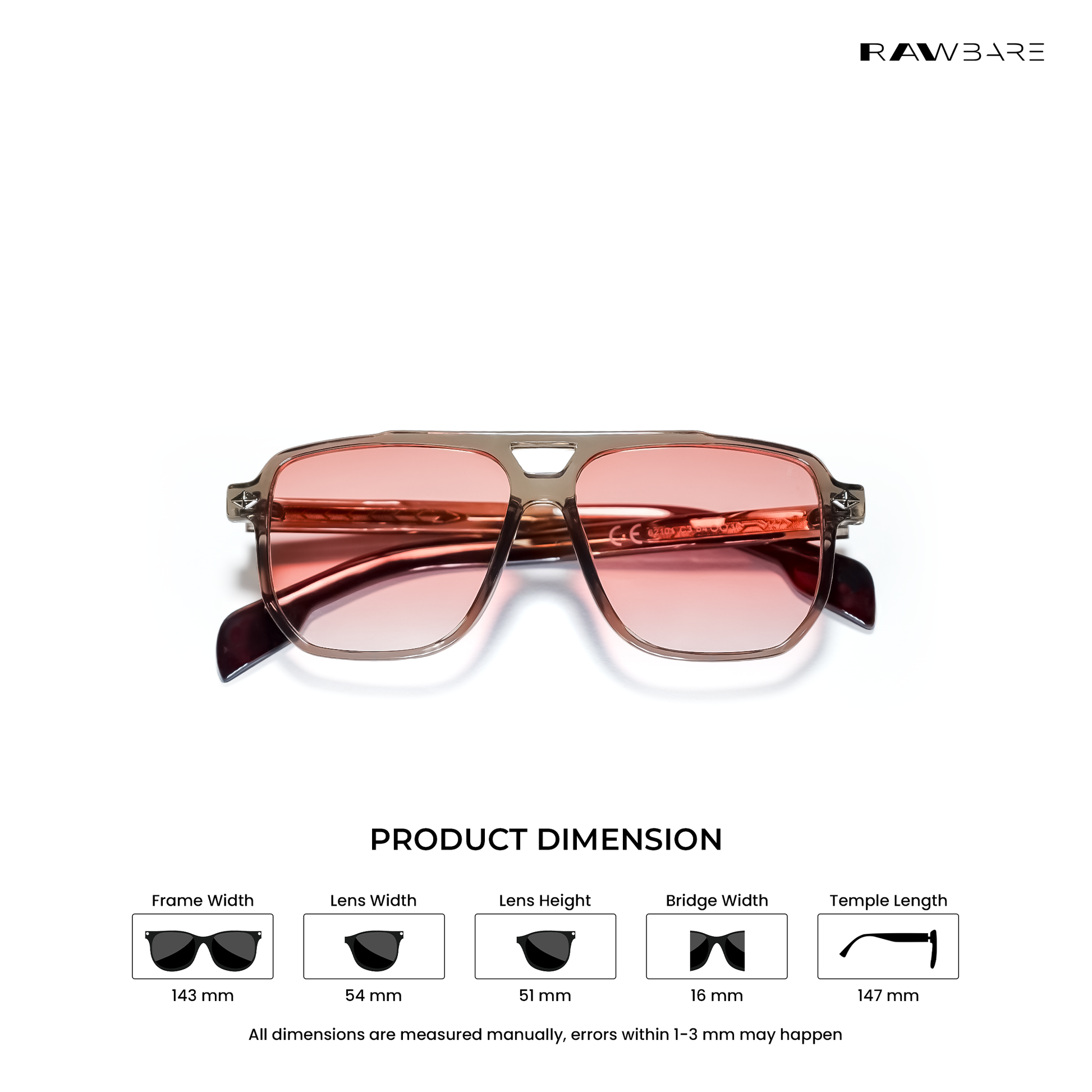 Rawbare Diu Dawn Burnt Aura square sunglasses feature a lightweight frame, UV400 protected lenses, and a clean square design built for daily comfort and sharp everyday style.
