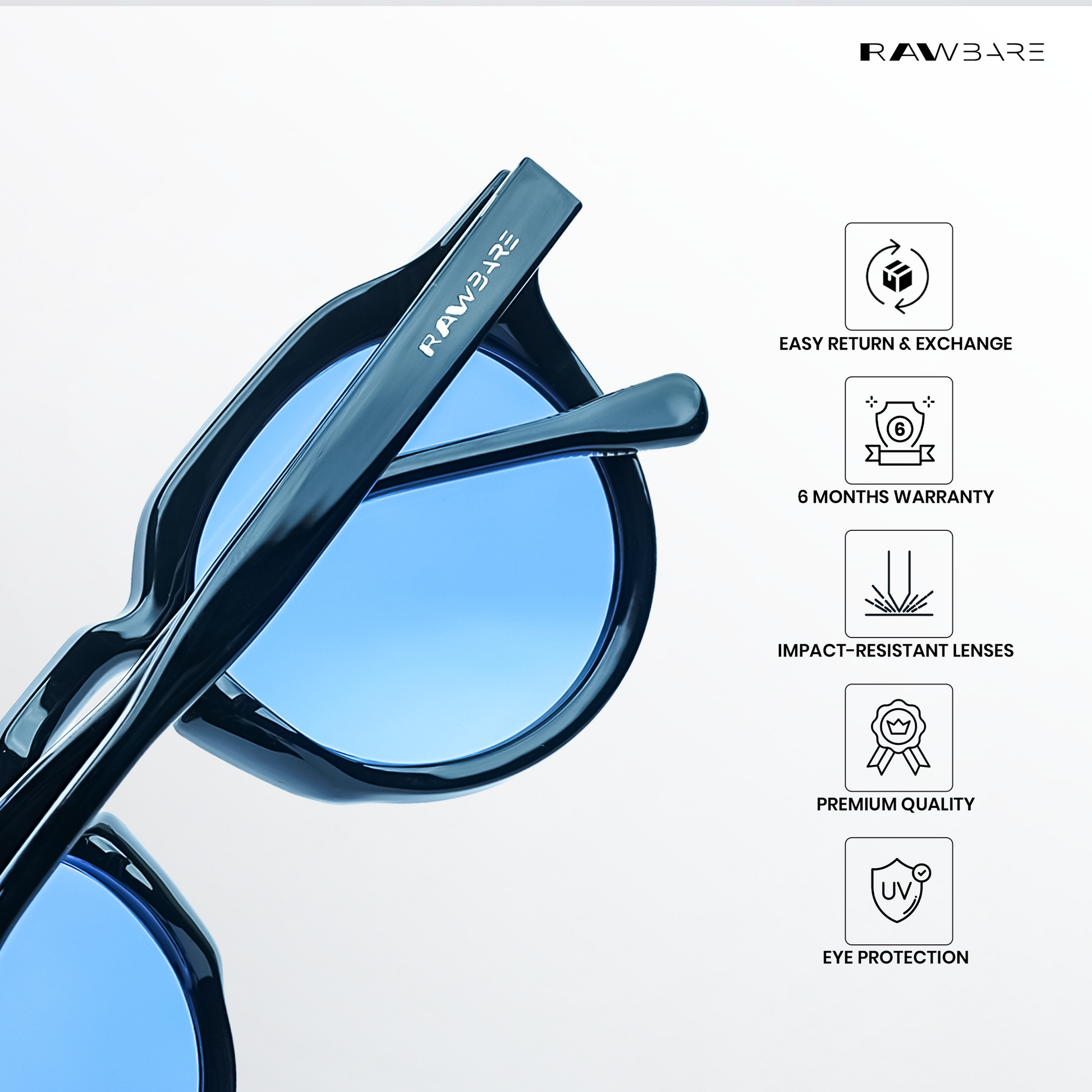 At Rawbare, every pair is crafted with precision and care to meet the highest standards. Our 6-month warranty reflects our commitment to quality and your trust in us. While we stand firmly behind our products, we believe true assurance comes from experiencing eyewear that is built to last. Thank you for choosing Rawbare—where style meets reliability.