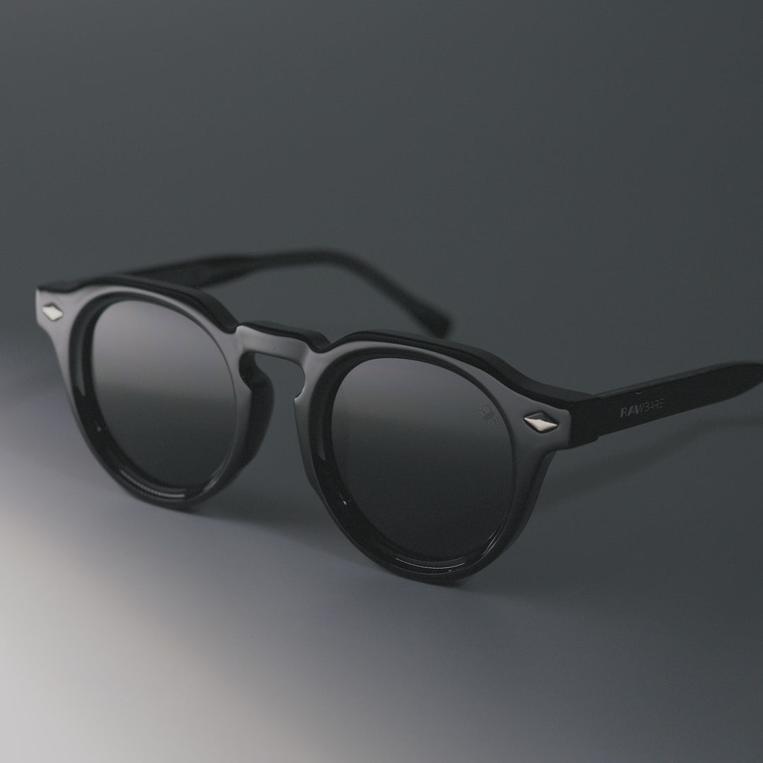 Rawbare Groove Shades All Black round sunglasses feature a lightweight frame, UV400 lenses, and a classic round design built for all-day comfort and glare-free everyday wear.