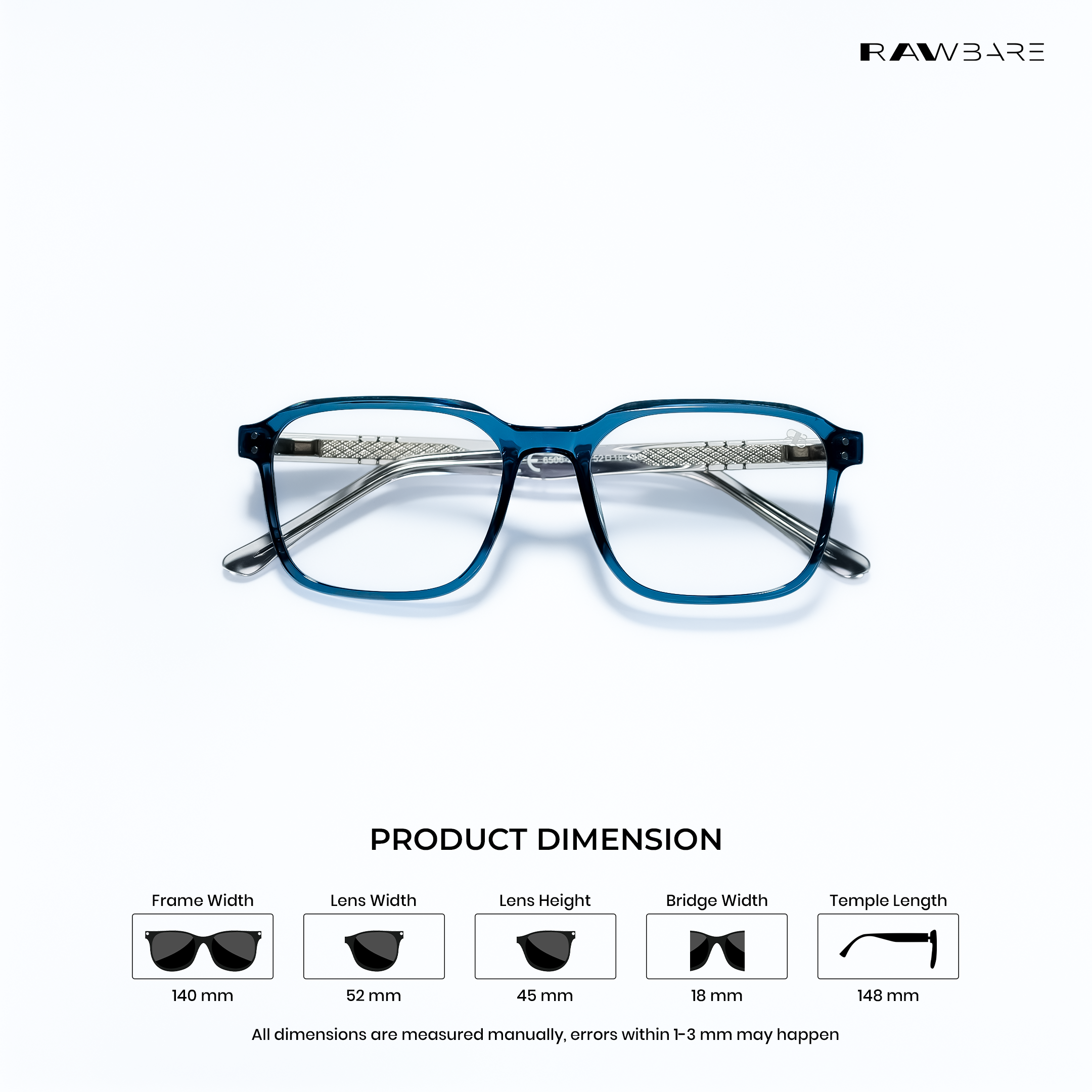 Rawbare Ivox Blue square blue-cut eyewear features a lightweight frame, blue light blocking lenses, and a clean square design built for reduced eye strain and all-day screen comfort.