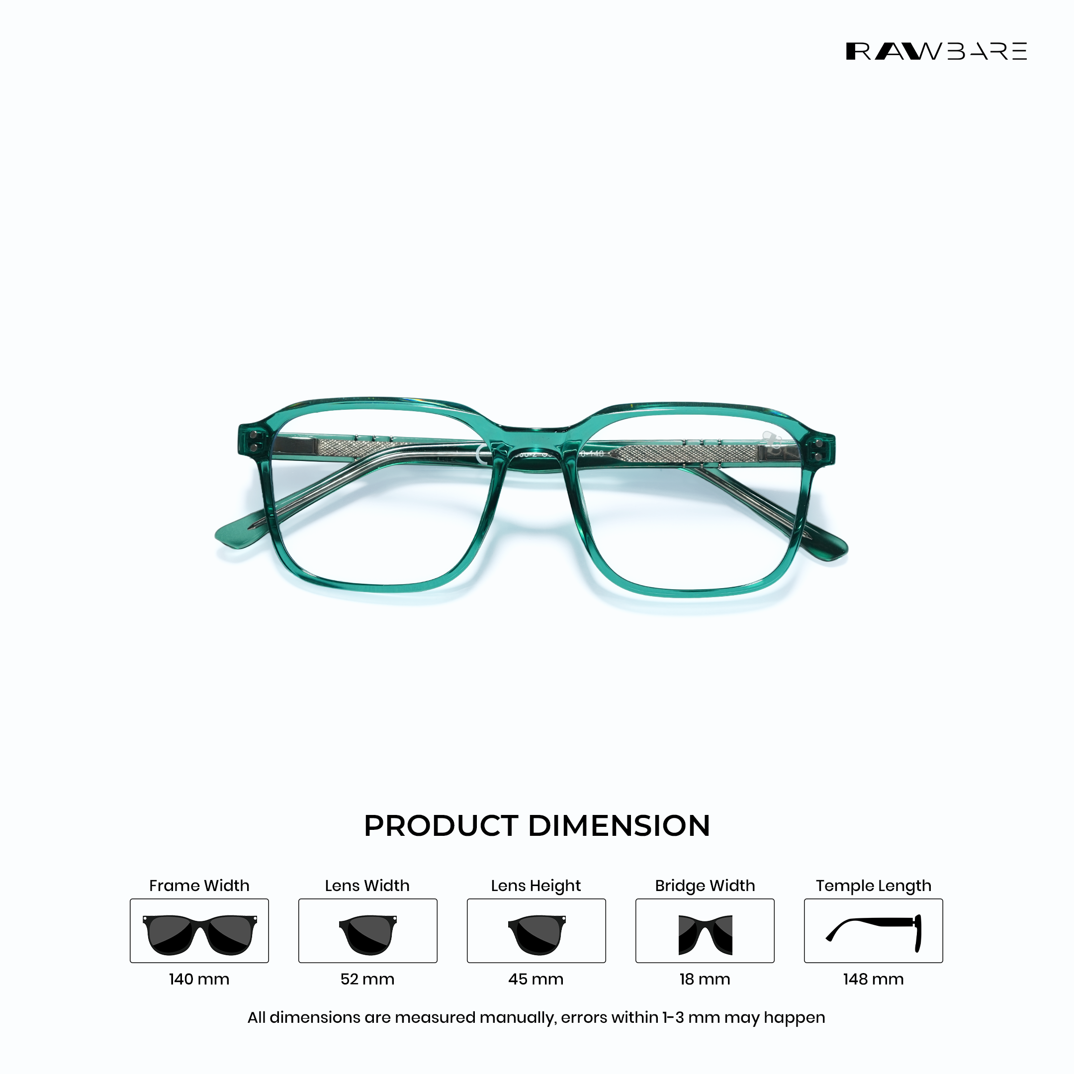 Rawbare Ivox Green square blue-cut eyewear features a lightweight frame, blue light blocking lenses, and a clean square design built for reduced eye strain and all-day screen comfort.