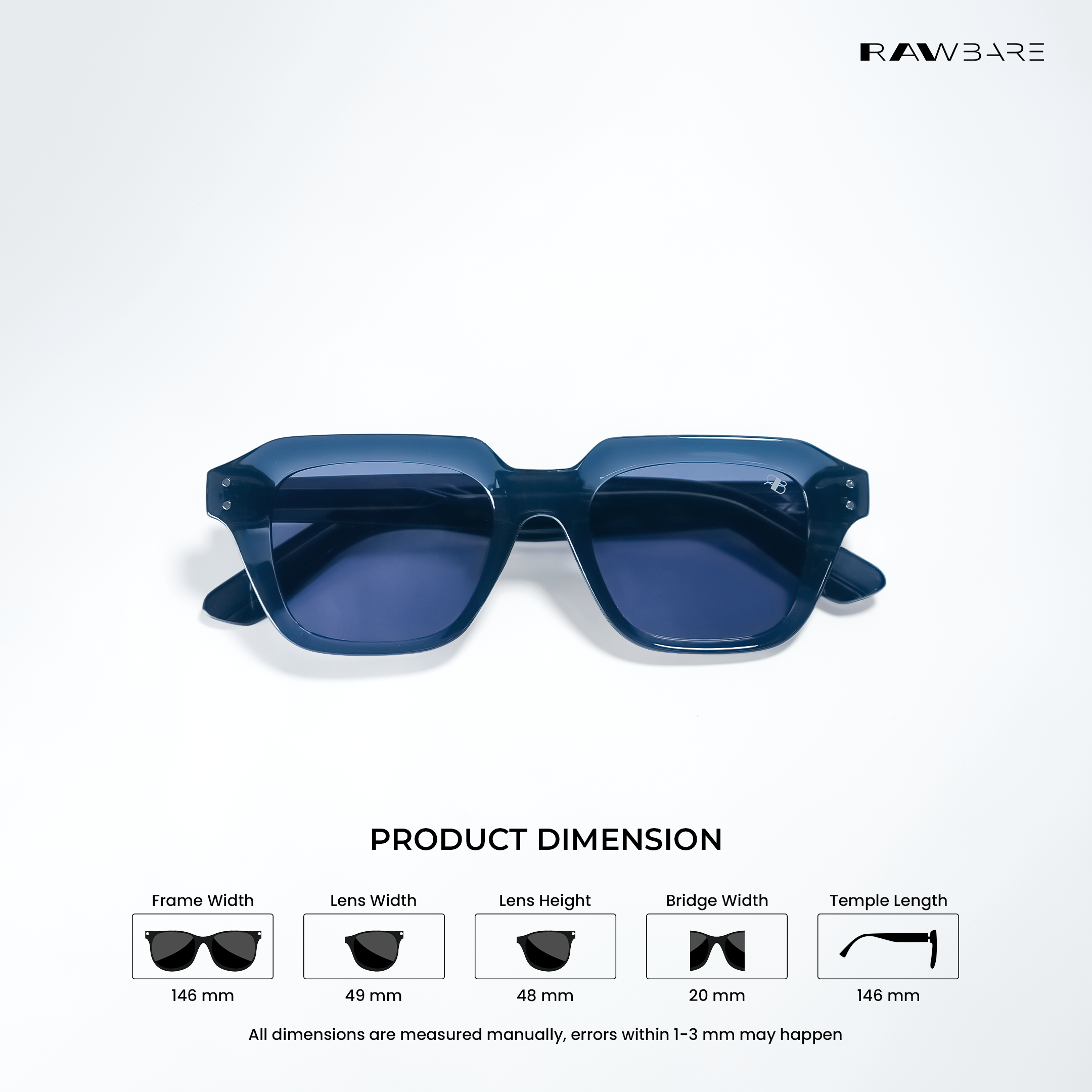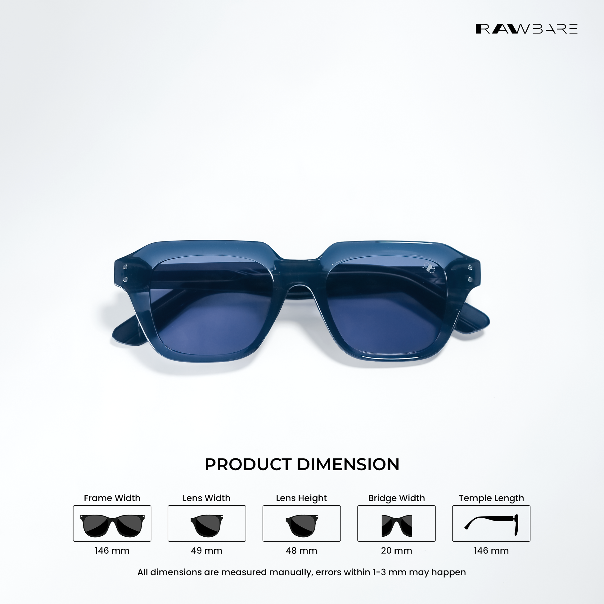 Rawbare Spiti Spark Midnight Blue square sunglasses feature a lightweight frame, UV400 protected lenses, and a sharp square design built for all-day comfort and confident everyday wear.