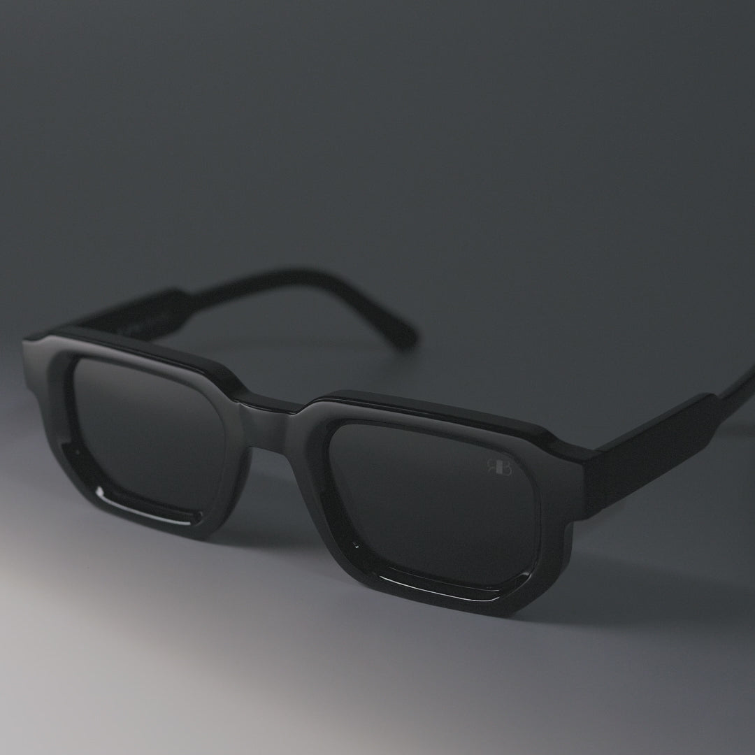 Rawbare Vintage Cube All Black Rectangle sunglasses feature a lightweight frame, UV400 protected lenses, and a sleek design built for clear vision and all-day comfort.
