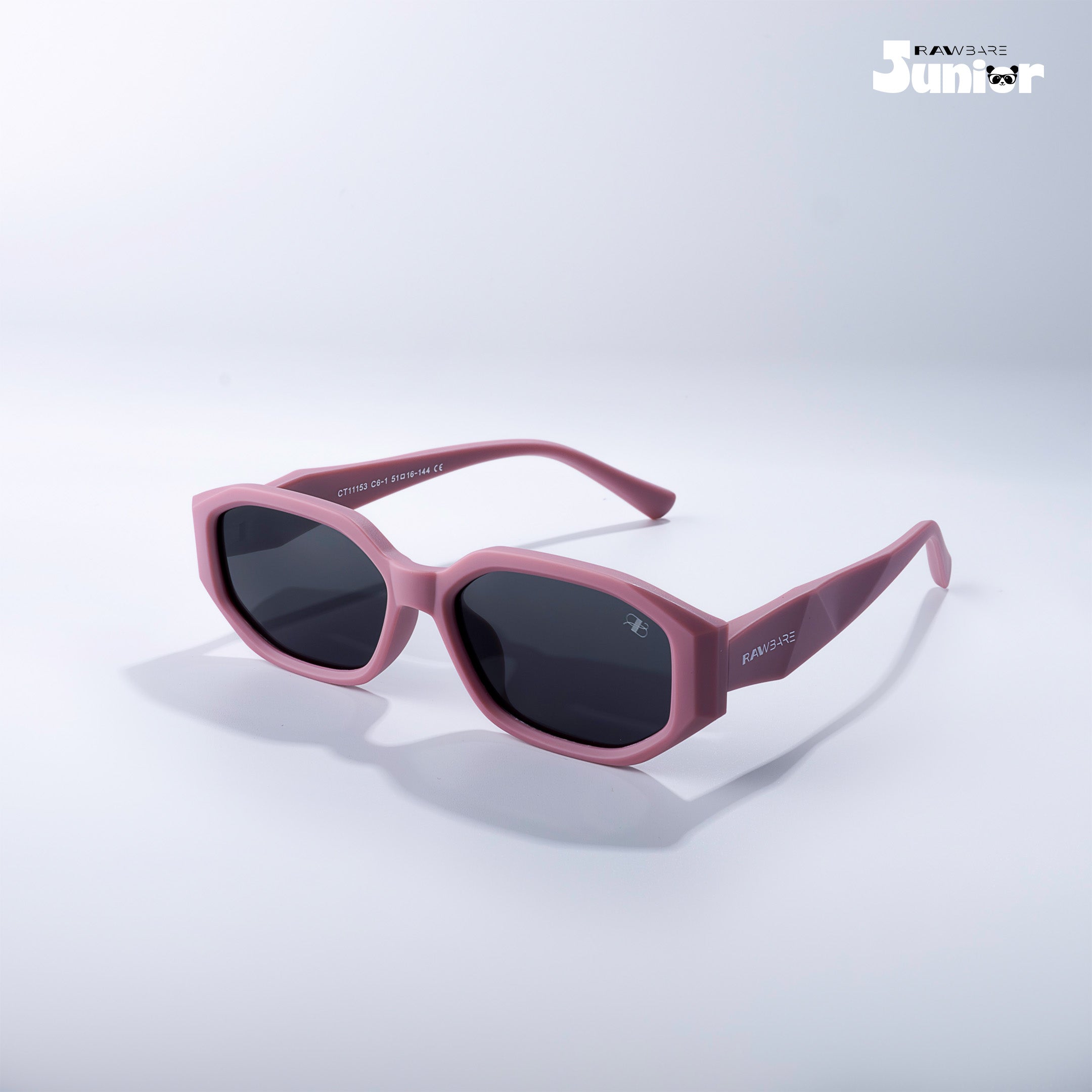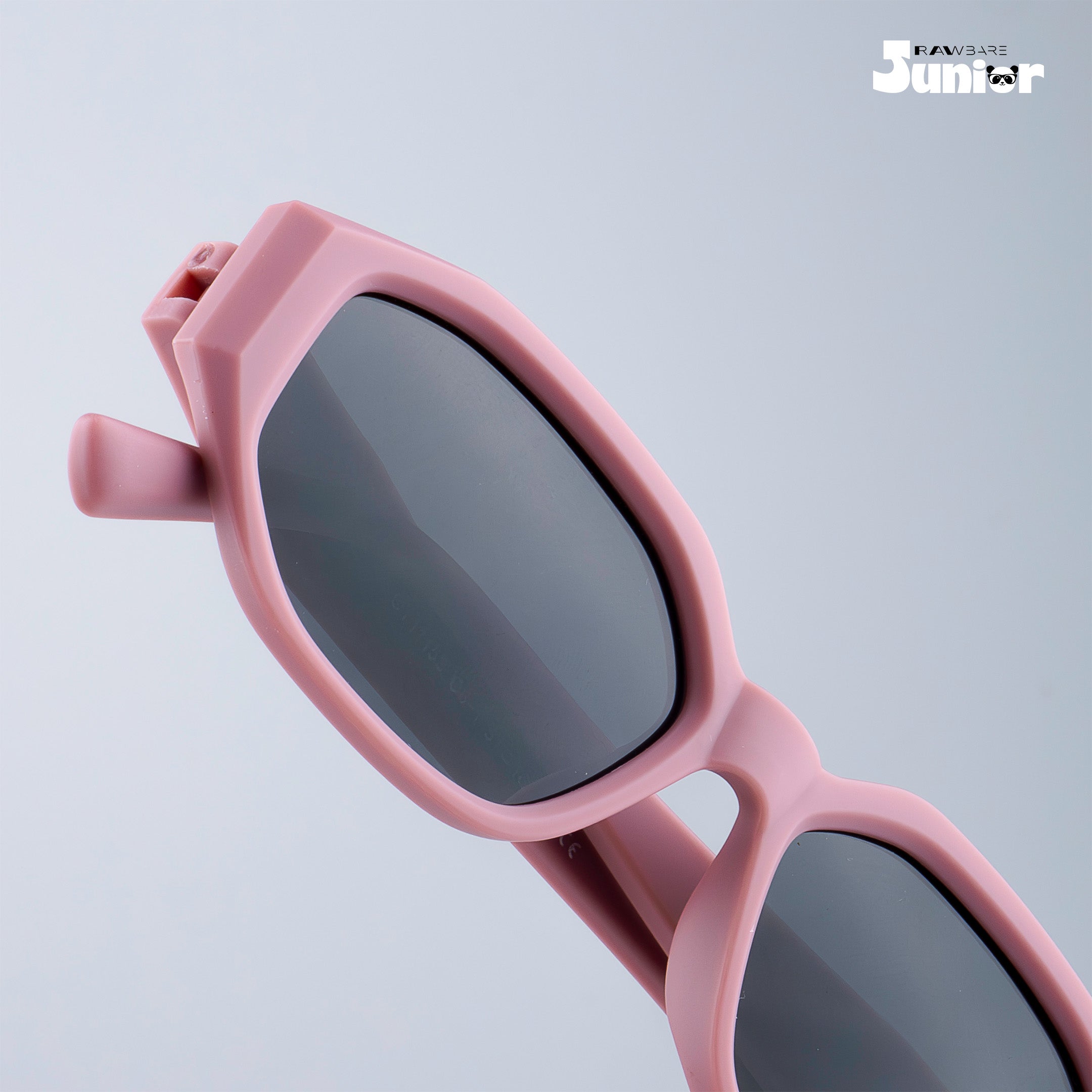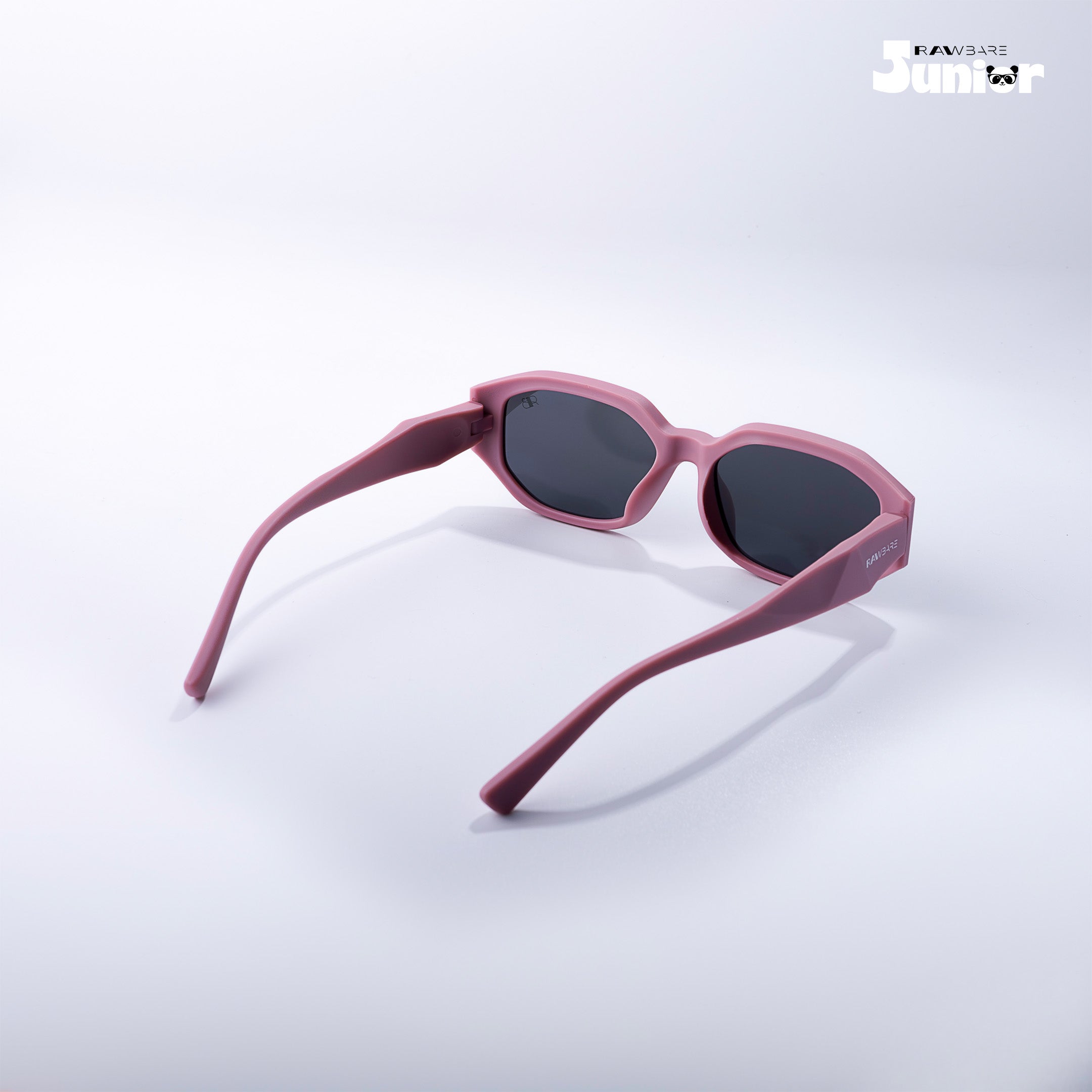 Rawbare Candy Dash Pink Swirl irregular rectangle kids’ sunglasses feature a playful berry-toned frame in a trendy irregular rectangle shape, polarized UV400 lenses for full sun protection and glare reduction, and a lightweight, durable design made for fun, comfortable all-day wear.