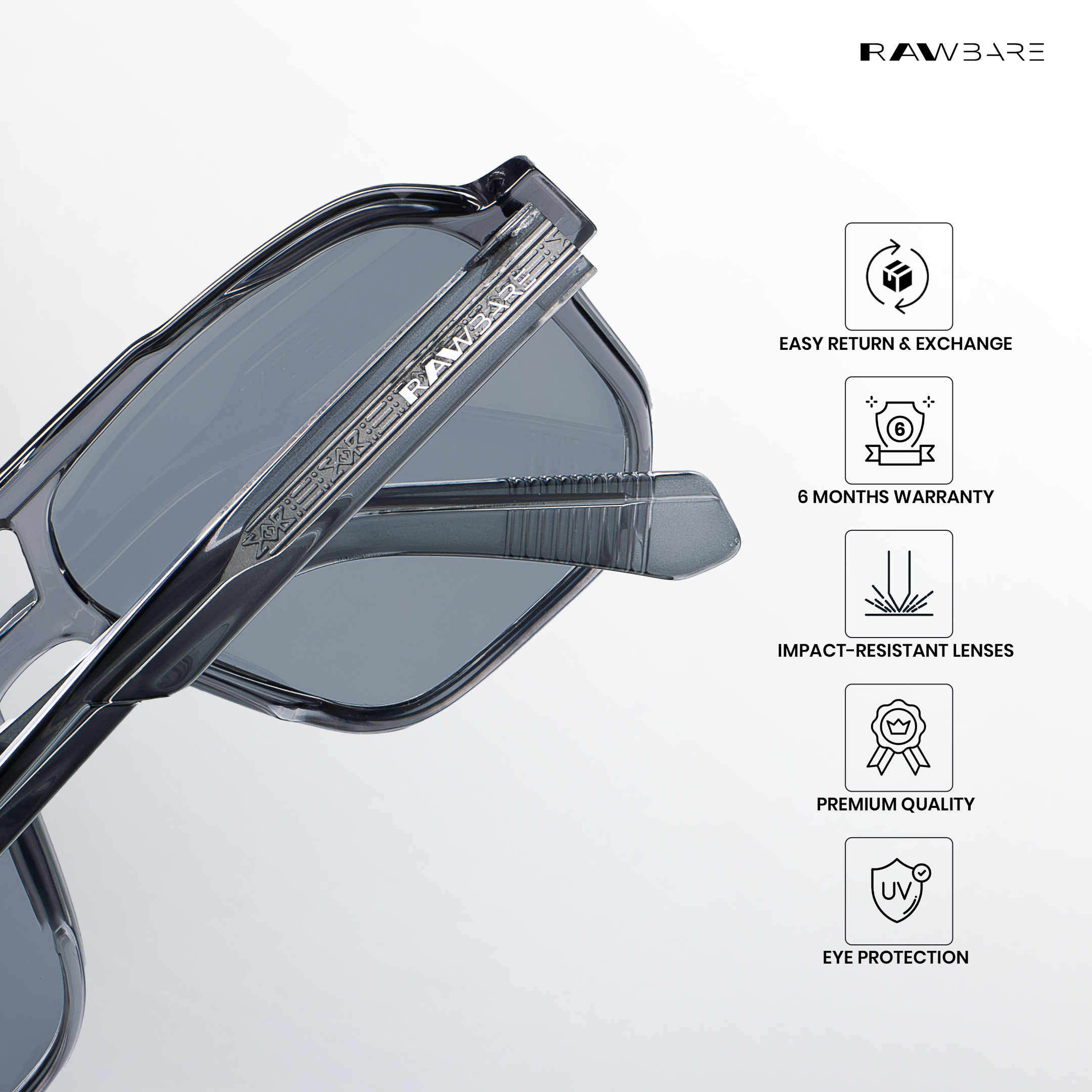 At Rawbare, every pair is crafted with precision and care to meet the highest standards. Our 6-month warranty reflects our commitment to quality and your trust in us. While we stand firmly behind our products, we believe true assurance comes from experiencing eyewear that is built to last. Thank you for choosing Rawbare—where style meets reliability.