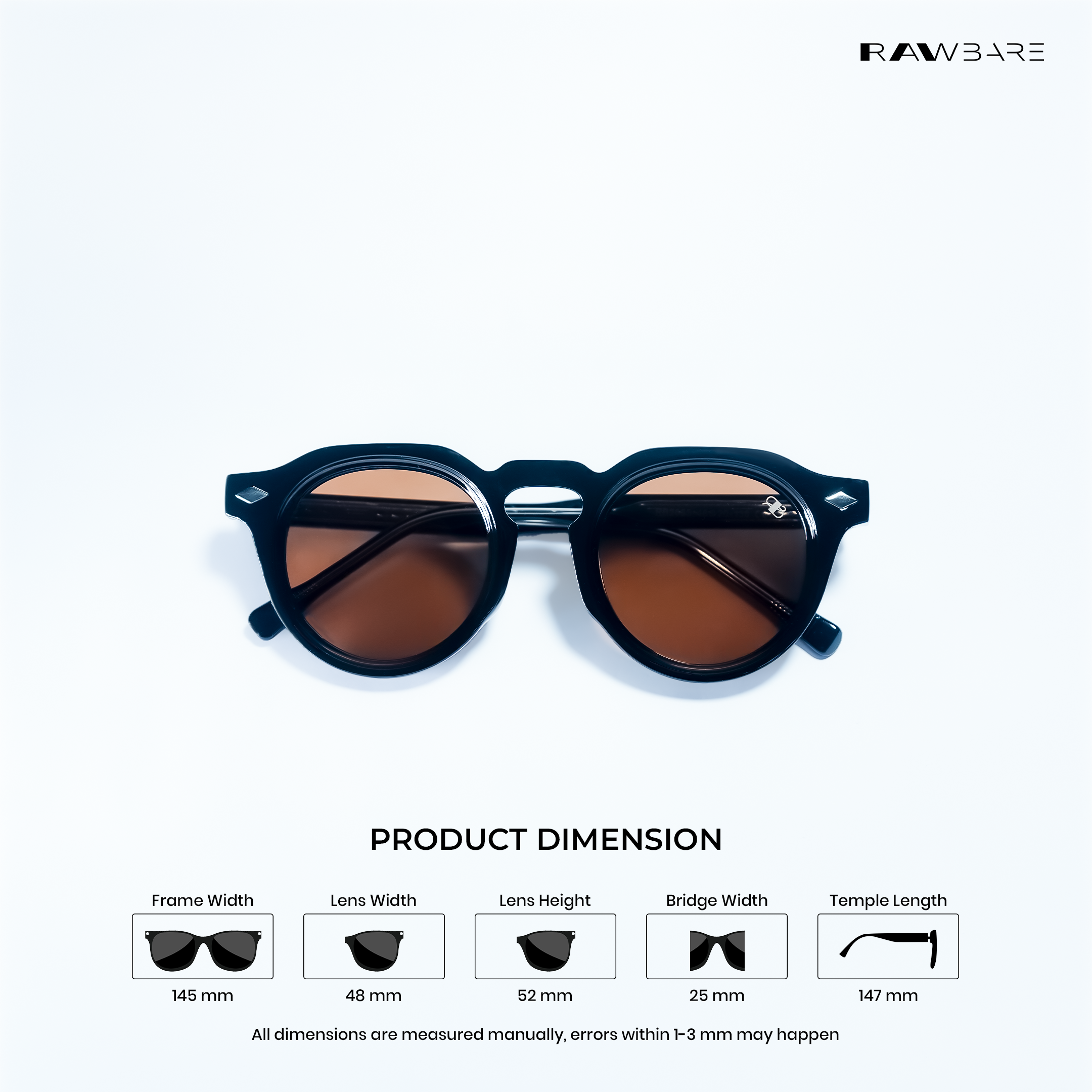 Rawbare Groove Shades Brown Black round sunglasses feature a lightweight frame, UV400 lenses, and a classic round design built for all-day comfort and glare-free everyday wear.