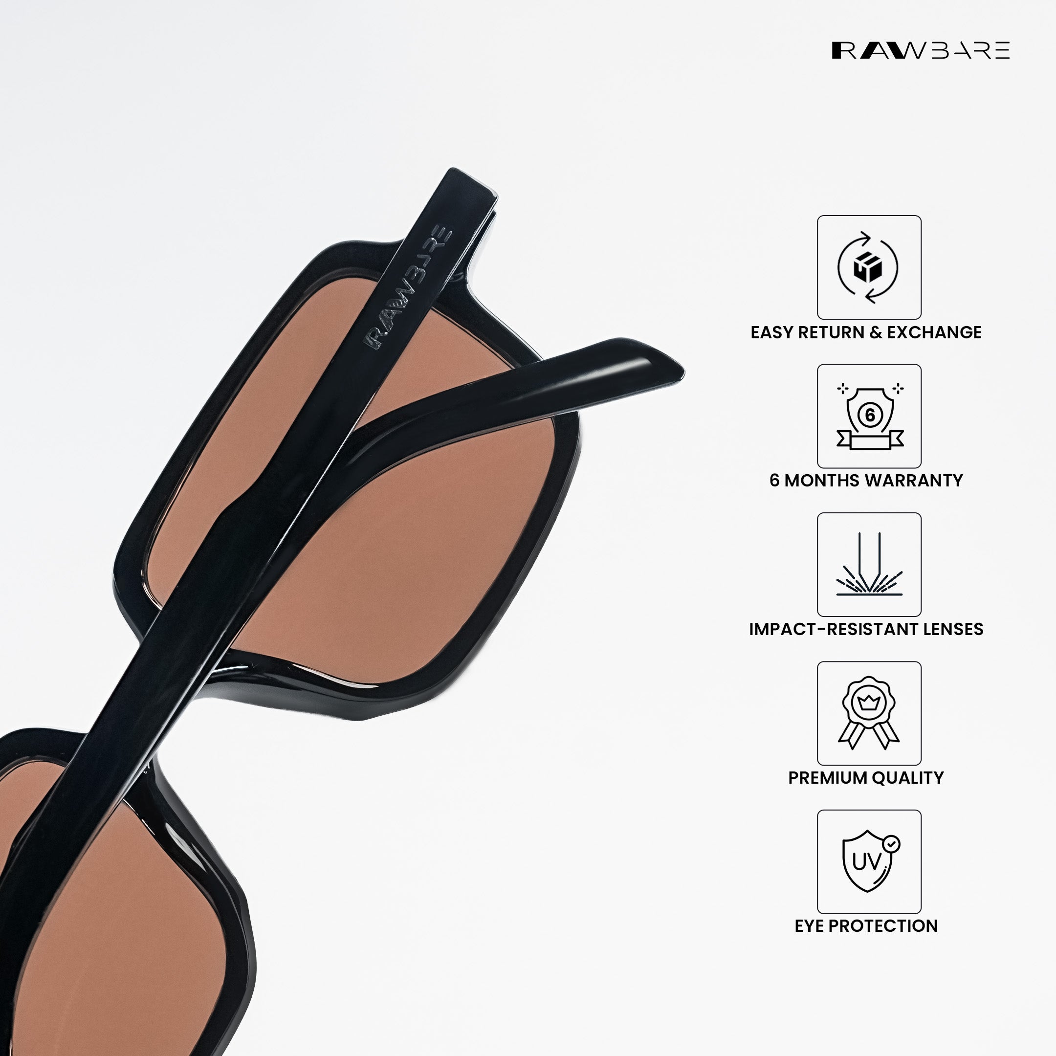 The Meerut Grid – Sable Black Square Sunglasses by rawbare bring subtle depth to a sleek, modern silhouette. Designed with a square frame in sable-black tones, this pair offers a refined variation of classic black with a softer, layered feel. Perfect for versatile styling, it delivers comfort with a polished, contemporary presence.