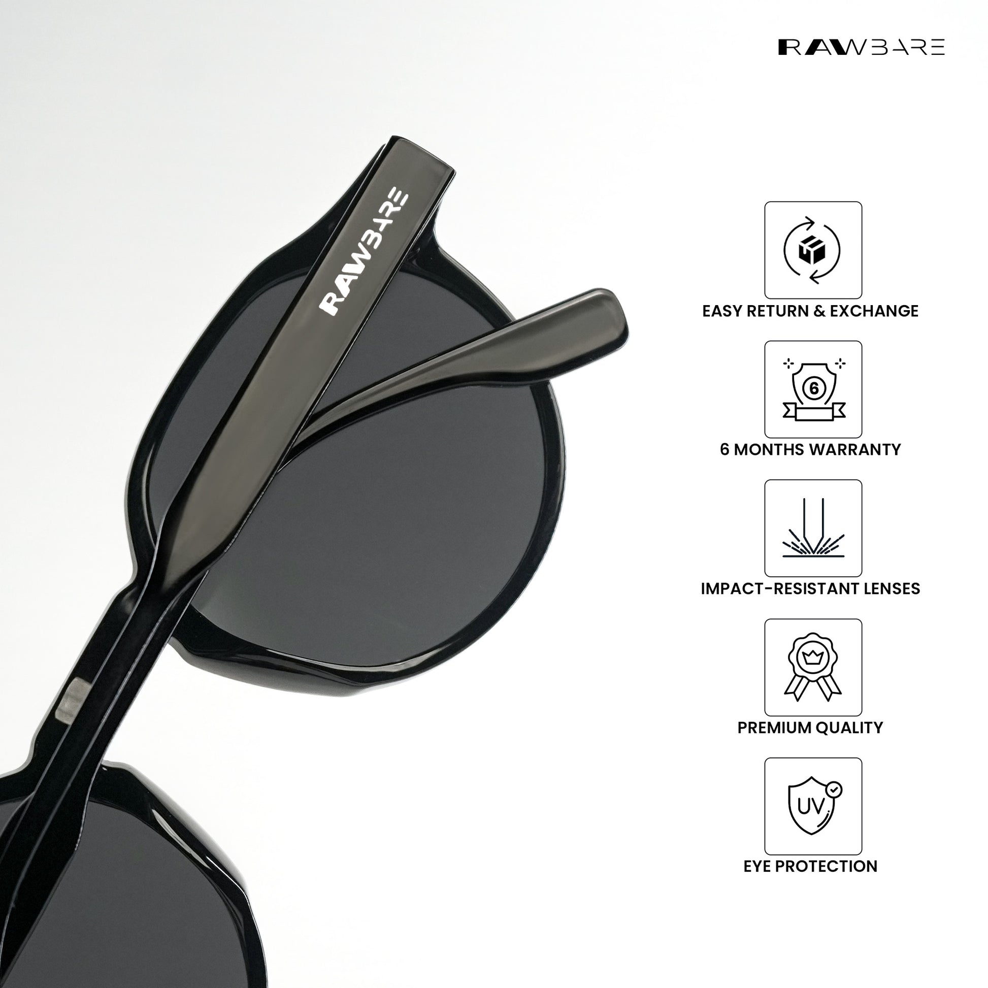 At Rawbare, every pair is crafted with precision and care to meet the highest standards. Our 6-month warranty reflects our commitment to quality and your trust in us. While we stand firmly behind our products, we believe true assurance comes from experiencing eyewear that is built to last. Thank you for choosing Rawbare—where style meets reliability.