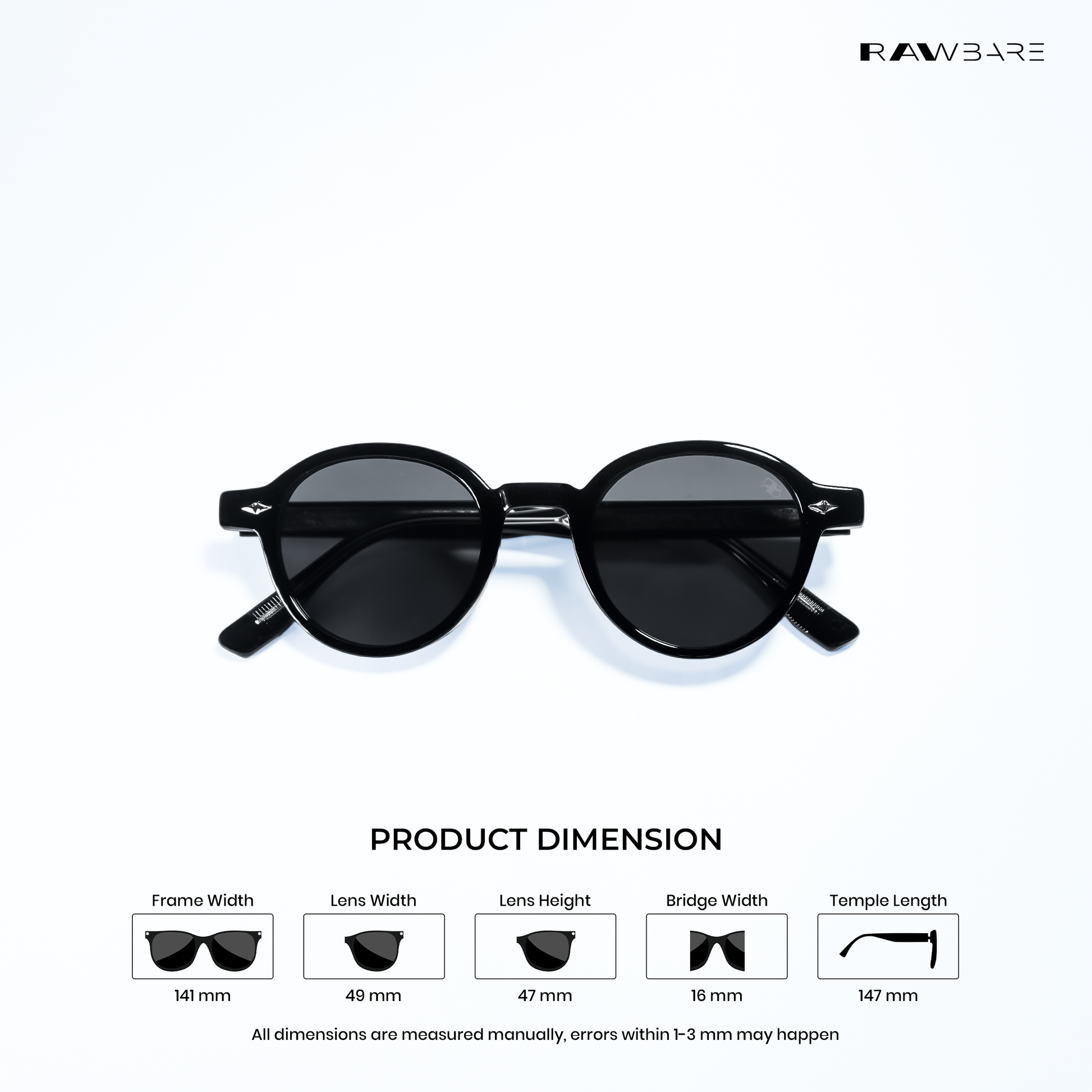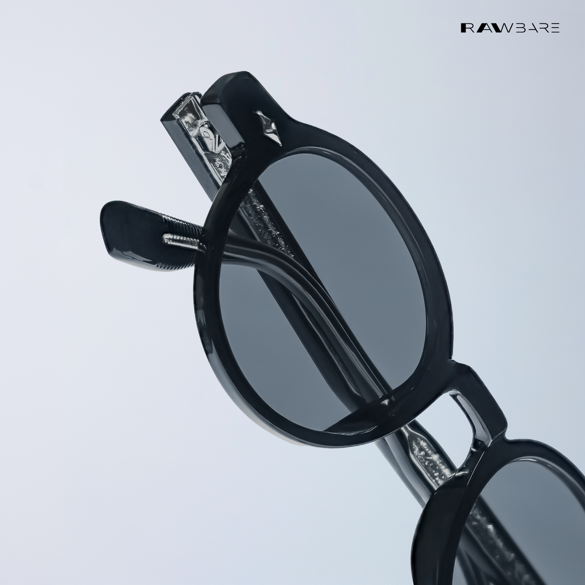 Rawbare Nashik Noir Black Core oval sunglasses feature a lightweight frame, UV400 protected lenses, and a sleek oval design built for daily comfort and effortless everyday style.