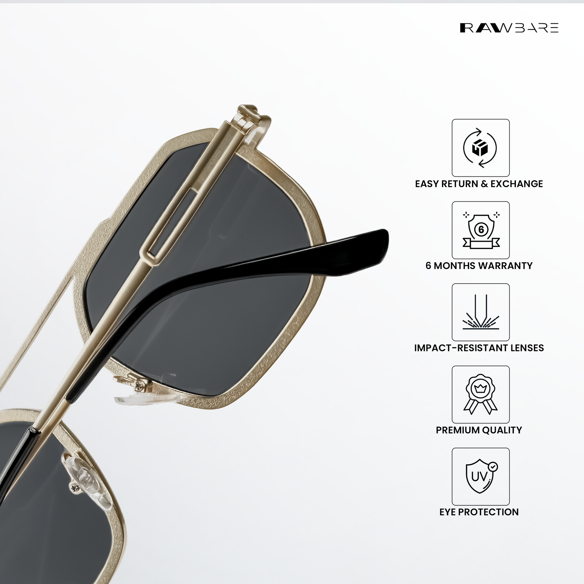 At Rawbare, every pair is crafted with precision and care to meet the highest standards. Our 6-month warranty reflects our commitment to quality and your trust in us. While we stand firmly behind our products, we believe true assurance comes from experiencing eyewear that is built to last. Thank you for choosing Rawbare—where style meets reliability.
