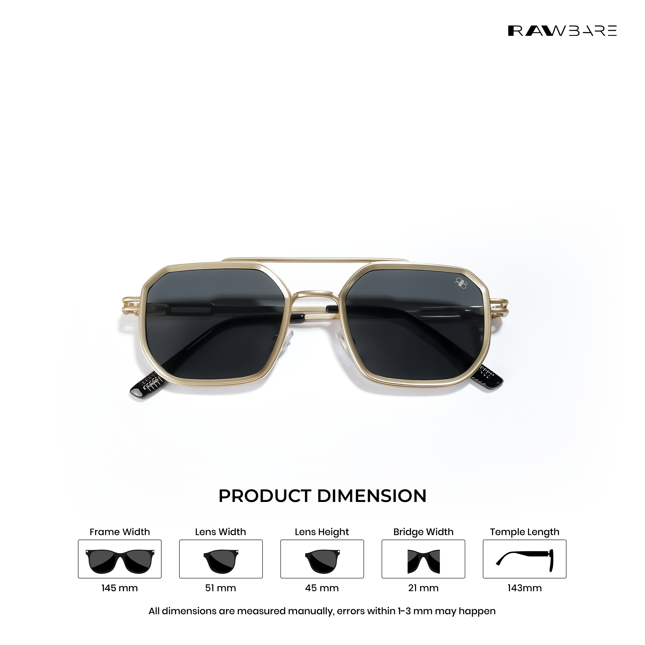 Rawbare Metal Aviator 2.0 Black Gold sunglasses feature a lightweight frame, UV400 protected lenses, and a sleek design built for clear vision and all-day comfort.