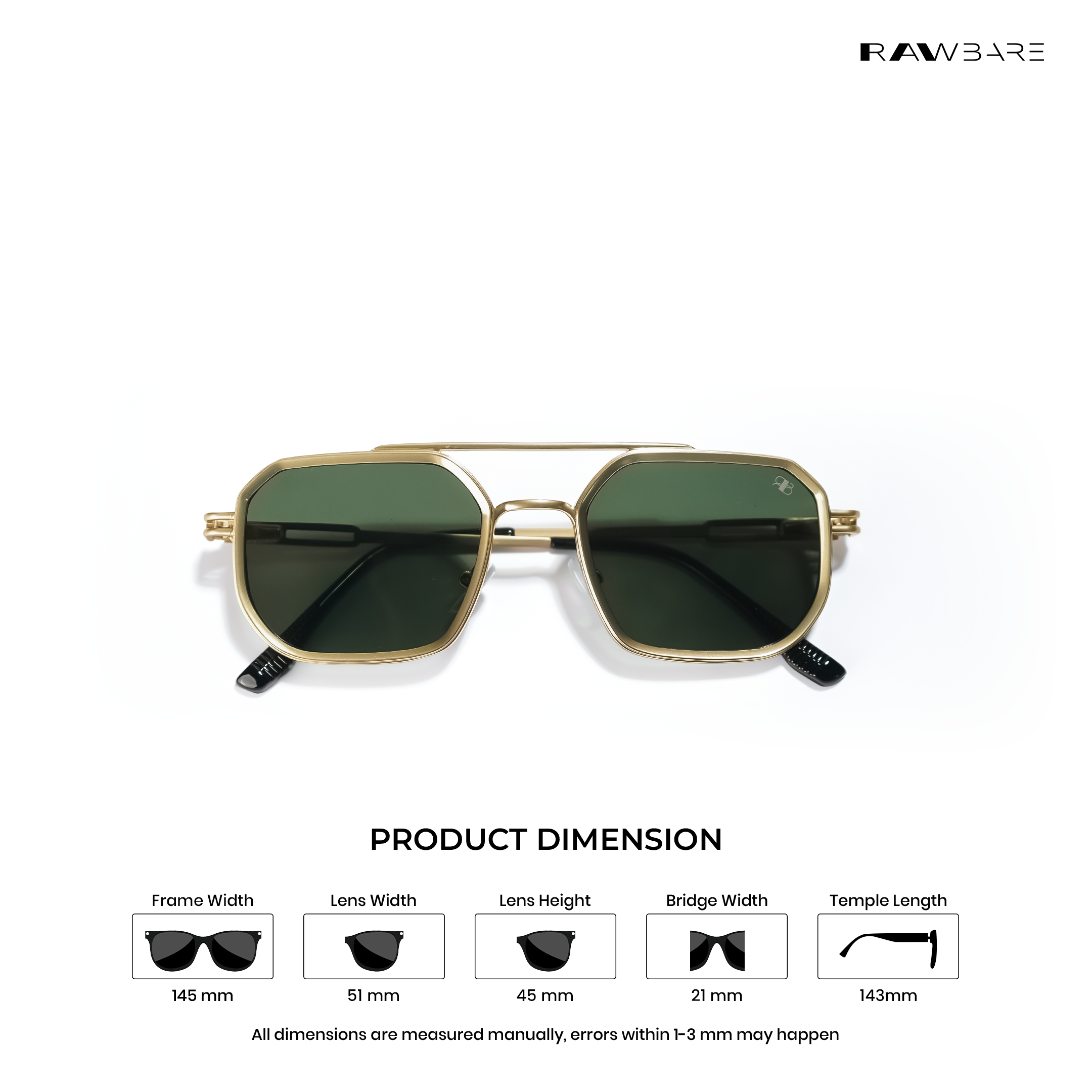 Rawbare Metal Aviator 2.0 Green Gold sunglasses feature a lightweight frame, UV400 protected lenses, and a sleek design built for clear vision and all-day comfort.
