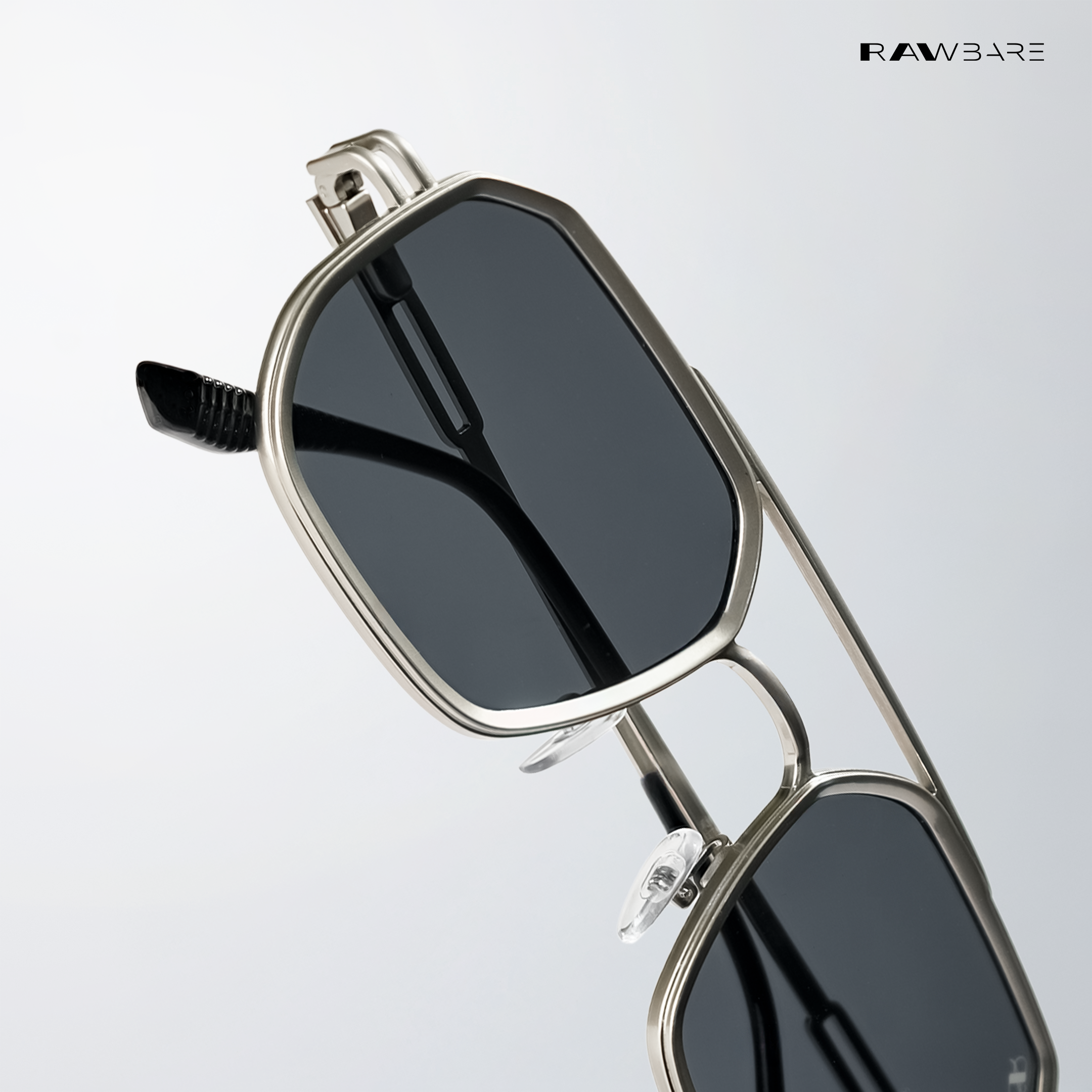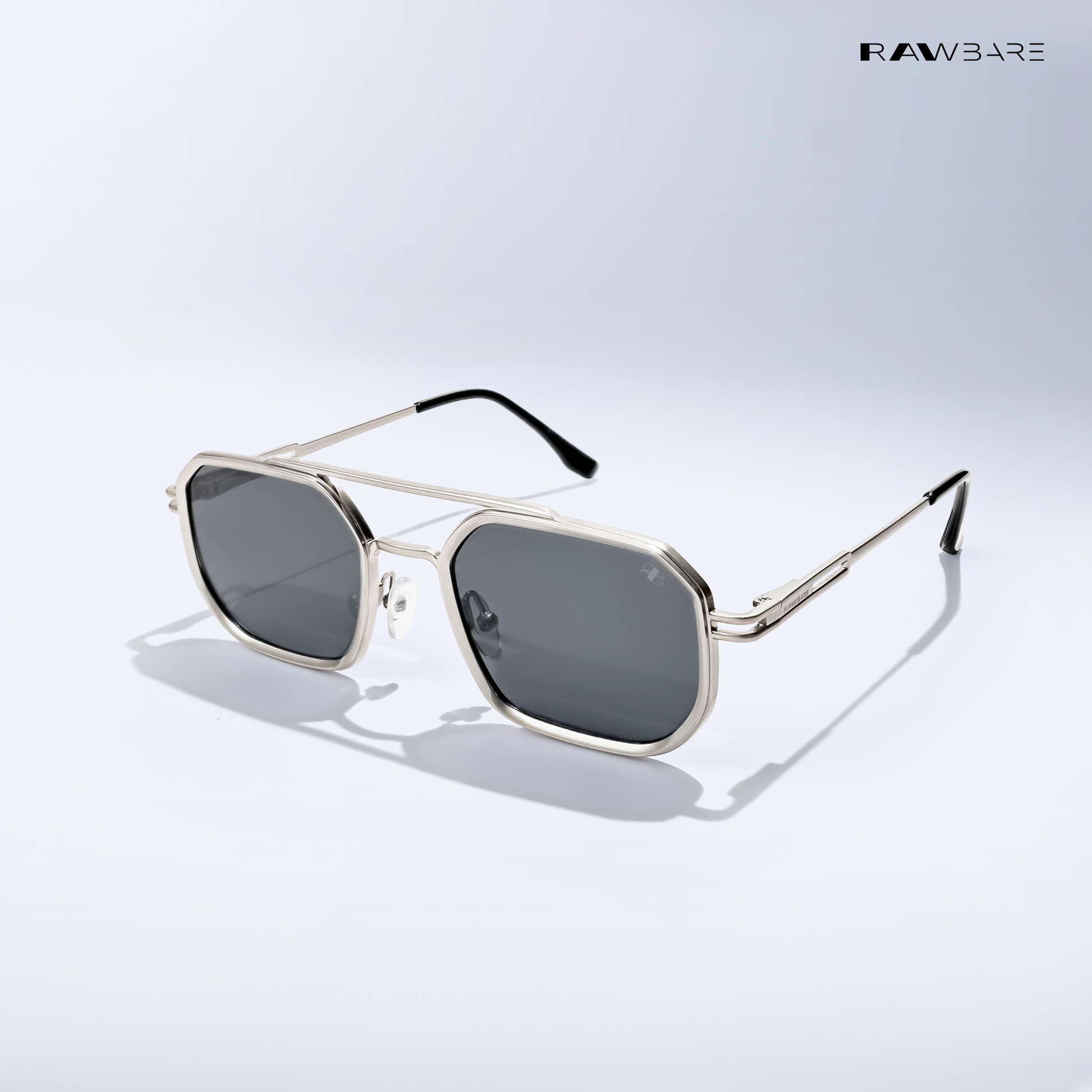 Rawbare Metal Aviator 2.0 Silver Black sunglasses feature a lightweight frame, UV400 protected lenses, and a sleek design built for clear vision and all-day comfort.