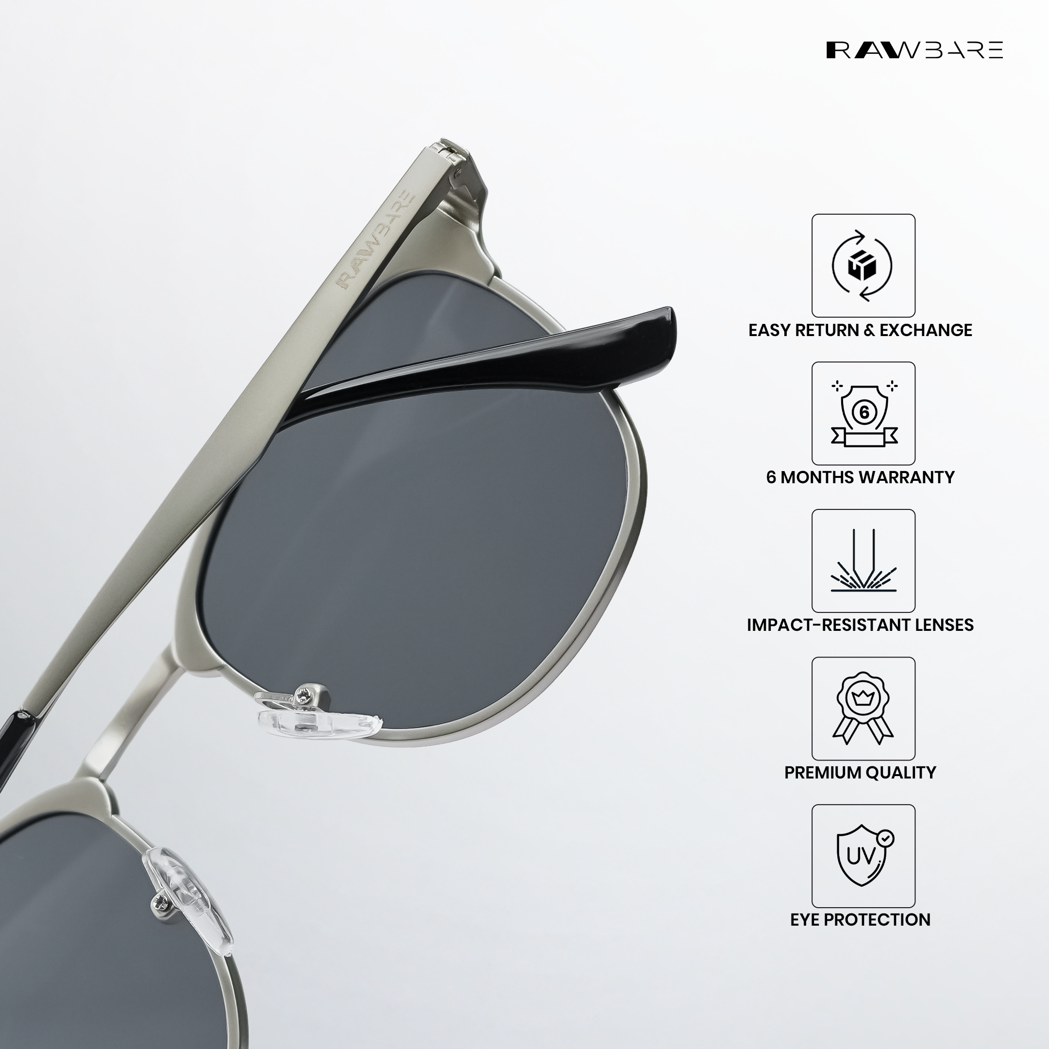 At Rawbare, every pair is crafted with precision and care to meet the highest standards. Our 6-month warranty reflects our commitment to quality and your trust in us. While we stand firmly behind our products, we believe true assurance comes from experiencing eyewear that is built to last. Thank you for choosing Rawbare—where style meets reliability.