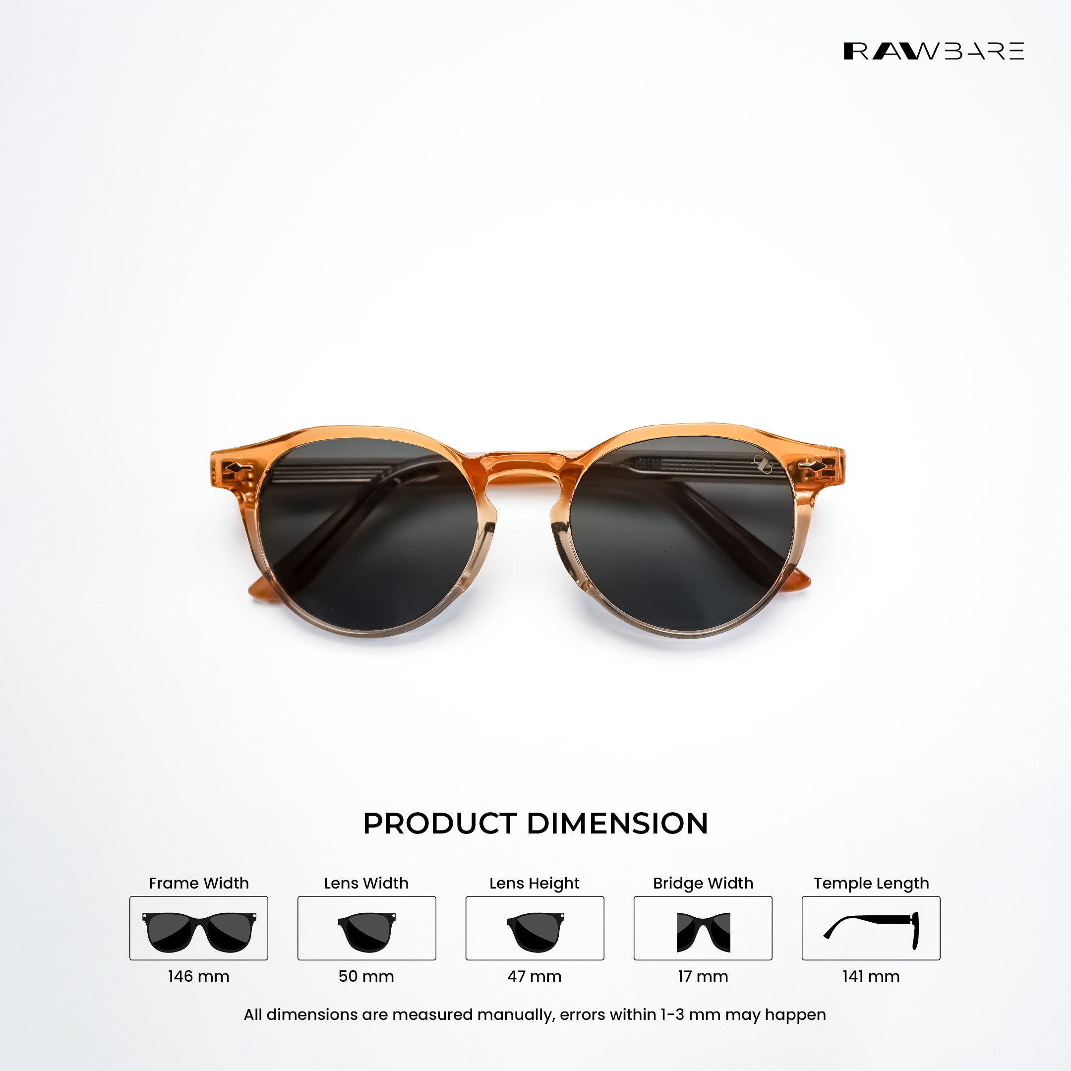 The Surat Shadow – Amber Shadow Round Sunglasses by rawbare bring warmth into a classic round silhouette. Designed with amber-tinted shadow lenses and a sleek frame, this pair offers a rich, balanced aesthetic that stands out subtly. From our luxe collection, it’s built for versatile styling with all-day comfort and a refined edge.